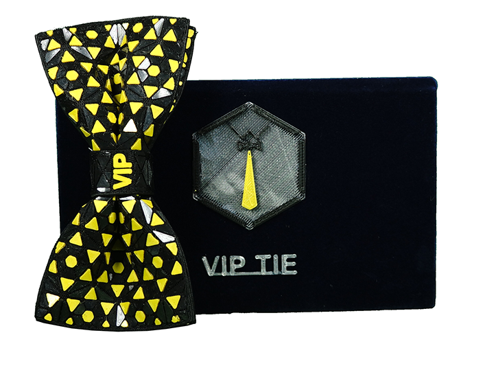 “VIP TIE combines first class luxury with an innovative high tech design. A complex combination of several complementary processes, Hand-Crafting, Embroidery, 3D Printing, and other fine rare materials joined together in a single unique product.”