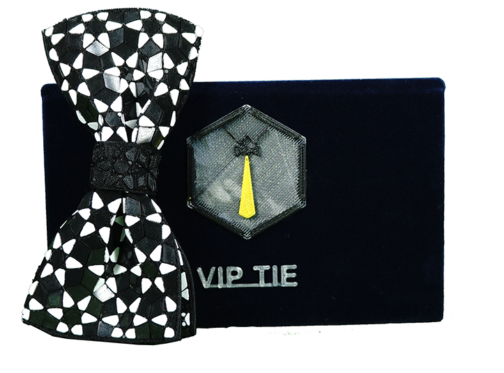 “VIP TIE combines first class luxury with an innovative high tech design. A complex combination of several complementary processes, Hand-Crafting, Embroidery, 3D Printing, and other fine rare materials joined together in a single unique product.”