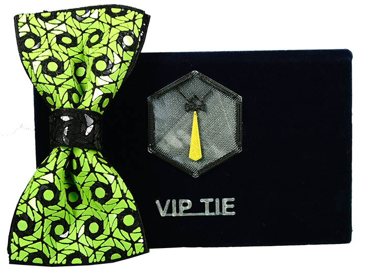 “VIP TIE combines first class luxury with an innovative high tech design. A complex combination of several complementary processes, Hand-Crafting, Embroidery, 3D Printing, and other fine rare materials joined together in a single unique product.”