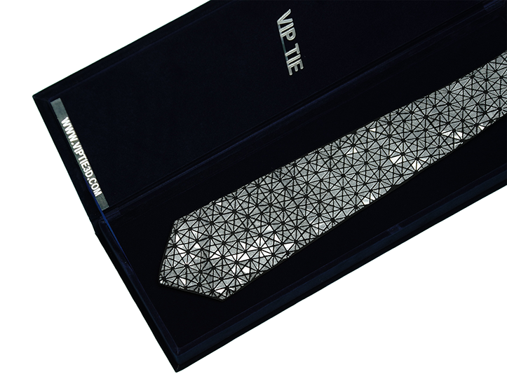 “VIP TIE combines first class luxury with an innovative high tech design. A complex combination of several complementary processes, Hand-Crafting, Embroidery, 3D Printing, and other fine rare materials joined together in a single unique product.”
