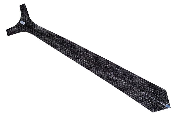 “VIP TIE combines first class luxury with an innovative high tech design. A complex combination of several complementary processes, Hand-Crafting, Embroidery, 3D Printing, and other fine rare materials joined together in a single unique product.”