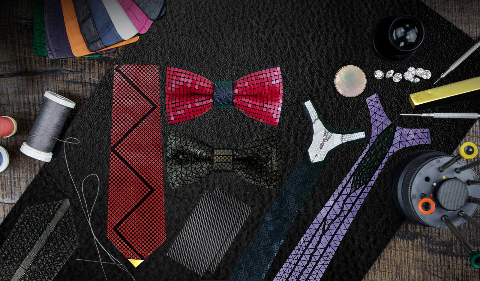 Choose among a rich variety of exotic leathers and sustainable leathers for unique details on your VIP TIE.