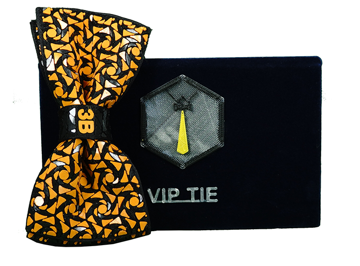 “VIP TIE combines first class luxury with an innovative high tech design. A complex combination of several complementary processes, Hand-Crafting, Embroidery, 3D Printing, and other fine rare materials joined together in a single unique product.”