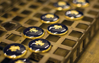 Each button is cut from solid brass and individually diestamped in the traditional way, and then rough-buffed by hand in preparation for plating, as appropriate, in either 9ct gold, silver, antique silver or bronze finishes.