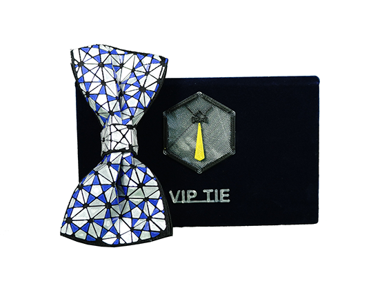 “VIP TIE COMBINES FIRST CLASS LUXURY WITH AN INNOVATIVE HIGH TECH DESIGN. A COMPLEX COMBINATION OF SEVERAL COMPLEMENTARY PROCESSES, HAND-CRAFTING, EMBROIDERY, 3D PRINTING, AND OTHER FINE RARE MATERIALS JOINED TOGETHER IN A SINGLE UNIQUE PRODUCT.”