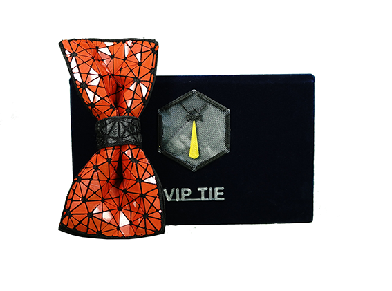 “VIP TIE COMBINES FIRST CLASS LUXURY WITH AN INNOVATIVE HIGH TECH DESIGN. A COMPLEX COMBINATION OF SEVERAL COMPLEMENTARY PROCESSES, HAND-CRAFTING, EMBROIDERY, 3D PRINTING, AND OTHER FINE RARE MATERIALS JOINED TOGETHER IN A SINGLE UNIQUE PRODUCT.”